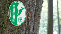 Durch die PEFC-Zertifizierung verpflichten sich Waldbesitzer dazu, geeignete alte Bäume nicht zu fällen. Sie bleiben als Biotopbäume der Natur erhalten. Mit der markanten Biotopbaumplakette beweisen Waldbesitzer ihr Engagement für die Artenvielfalt und den Naturschutz.