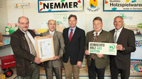 Das deutschlandweit erste PEFC-Regional-Label "Heimisches Holz aus Bayern" übergab Bayerns Staatsminister Helmut Brunner 2015 an die Nemmer Holzspielwaren GmbH.