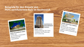 Auch Gebäude, die eine Zertifizierung nach LEED oder DGNB anstreben, werden seit 2016 besser bewertet, wenn diese mit Hölzern errichtet werden, die das PEFC-Zertifikat oder ein vergleichbares Siegel tragen.